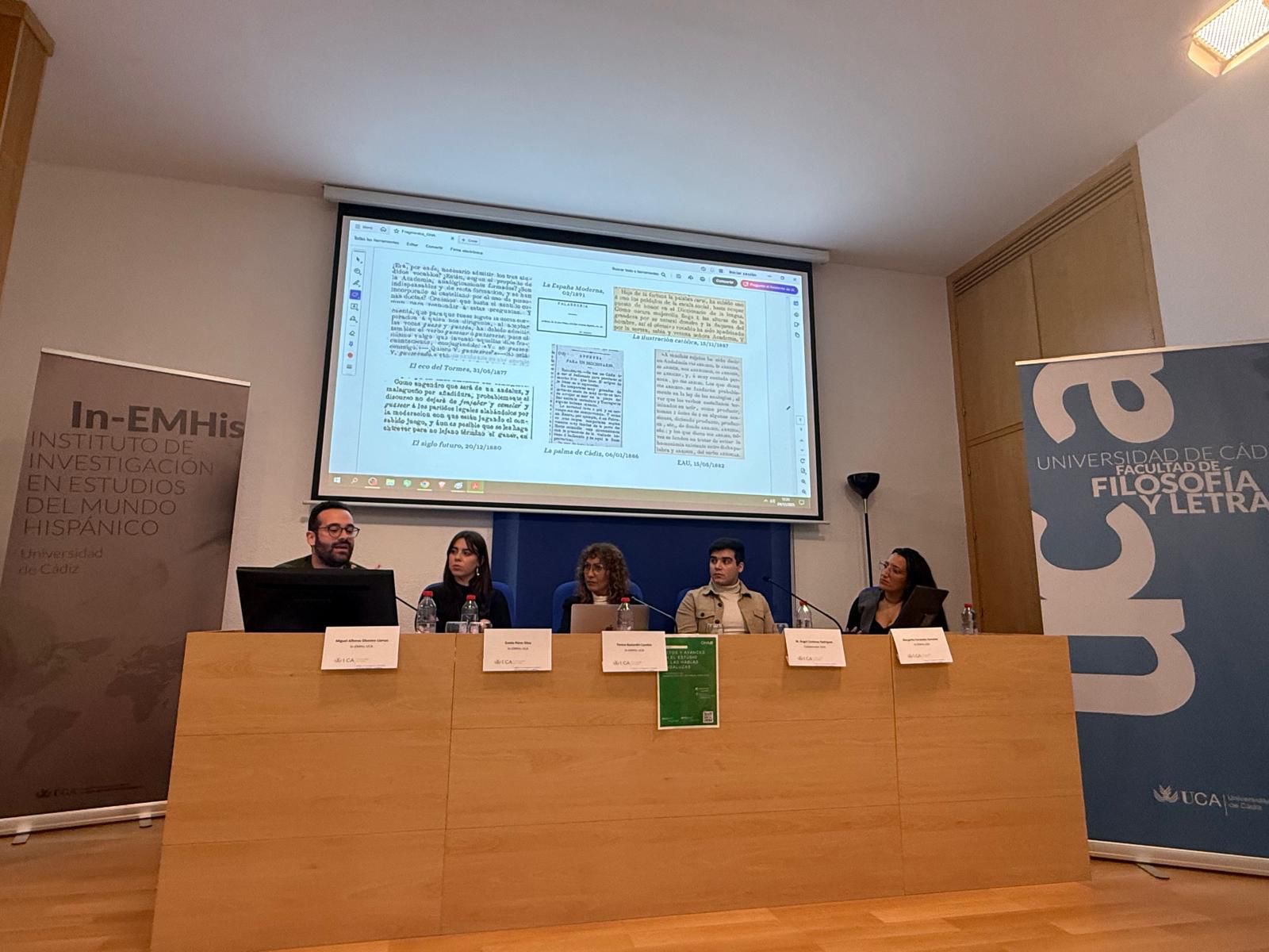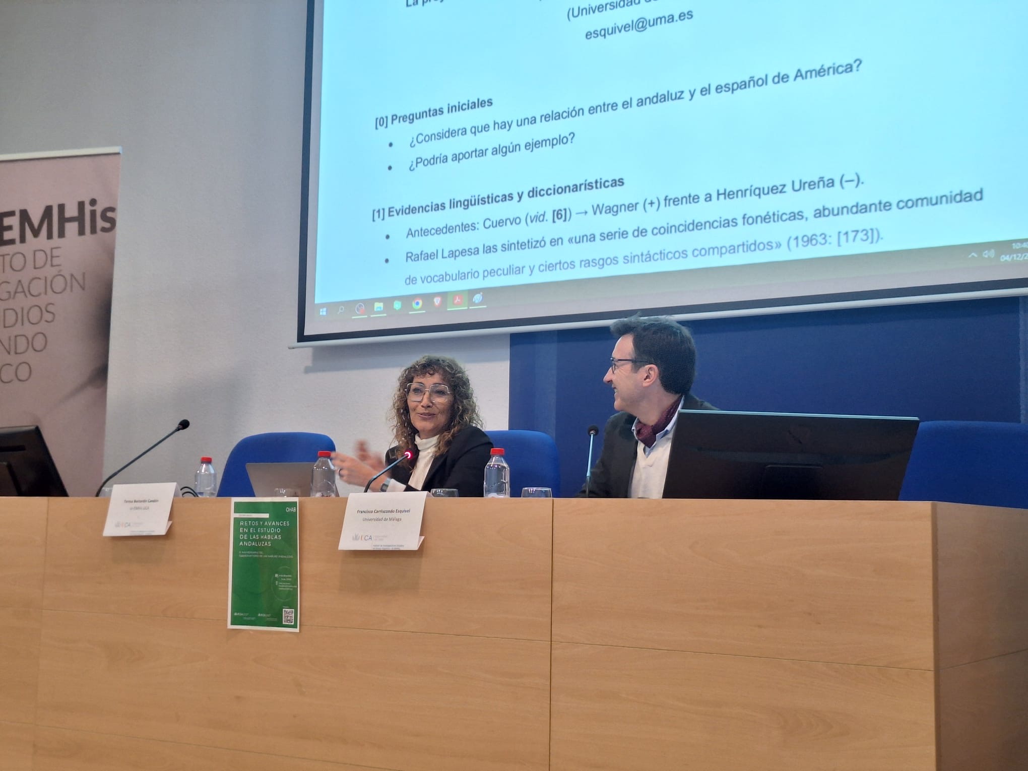 El OHA en las jornadas «Andalucía en la investigación lingüística y literaria», en su sesión del día 29 de octubre. El Observatorio participó en las jornadas de divulgación científica organizadas por el Instituto de Investigación en Estudios del Mundo Hispánico del que forma parte, con la participación de Teresa Bastardín Candón en la mesa redonda «Prejuicios y estereotipos en torno a Andalucía y lo andaluz» y de Estela Pérez Silva en la de jóvenes investigadores, con la intervención «El discurso femenino en la prensa española del siglo XIX: caracterízación discursiva e ideas y actitudes lingüísticas”».